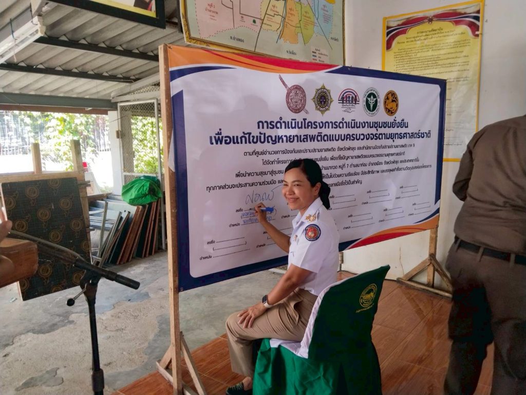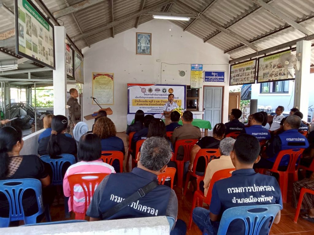 | วันที่ 12 ก.พ.69 เวลา 15.00 น. พ.ต.ท.สมบัติ มุสิกิม สว.สภ.โคกชะงาย ร.ต.อ.นิกร ราชบวร รอง สวป.สภ.โคกชะงาย พร้อมด้วยตำรวจชุดปฎิบัติการตำบลยั่งยืน สภ.โคกชะงาย ร่วมกับฝ่ายปกครอง อ.เมืองพัทลุง ,สาธารสุข อ.เมืองพัทลุง ,พัฒนาการ อ.เมืองพัทลุง, ทต.นาท่อม, รพ.สต.บ้านนาท่อม ผู้แทนส่วนราชการ ,ประชาชนในพื้นที่ ร่วมกิจกรรมพิธีเปิดโครงการดำเนินงานตำบลยั่งยืน เพื่อแก้ไขปัญหายาเสพติดแบบครบวงจรตามยุทธศาสตร์ชาติ และ ร่วมกันลงนามในบันทึกข้อตกลง เรื่องการป้องกันและแก้ไขปัญหายาเสพติดในหมู่บ้าน ณ ศาลาอเนกประสงค์บ้านโคกแย้ม ม.2 ต.นาท่อม อ.เมืองพัทลุง โดยมี นาง ศรุดา อินทร์ประพันธ์ นายอำเภอเมืองพัทลุงประธาน |